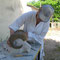 Hélène n'a pu participer que l'après-midi. Son projet devait donc être simple: elle a choisi l'escargot. Là c'est pareil, l'épate complète: voila un escargot qui a trouvé sa forme en 2 coups de cuiller à pot: clic-clac, j'ai que 2 photos.