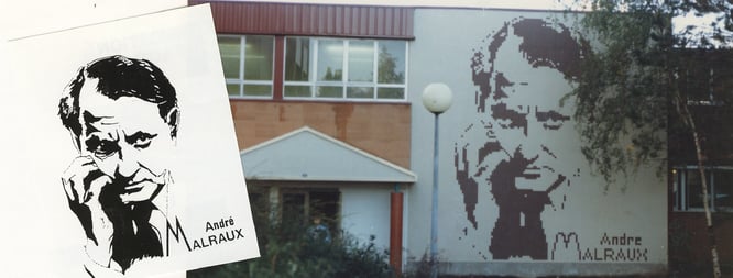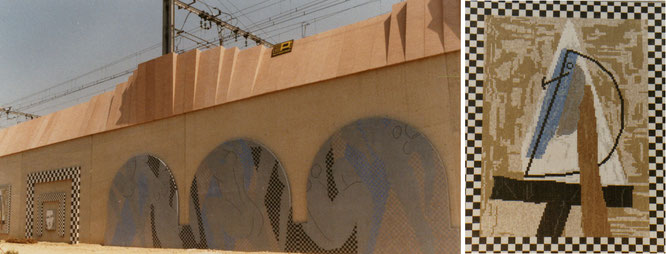 Mur pignon, en collaboration avec Claude Beaujour à Nanterre, fresque en mosaique, 2x2 cm pate