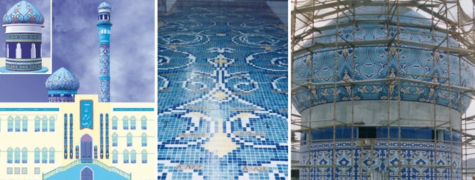 Fresques MO, 2x2cm grès cérame, rond point Djeddha 50 m2 / Sheraton Djeddha, 100 m2