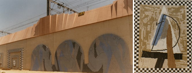 Fresque murale, parc municipal, 2x2cm grès cérame, Paray le Monial (71), 86 m2 (la réalisation à été faite par l'usine)
