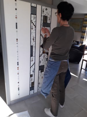 2023 - SALON PRIVATIF- BARCELONE - MUR 12M2 -EMAUX SICIS 1,5x1.5cm - TECHNIQUE EN GRILLE
