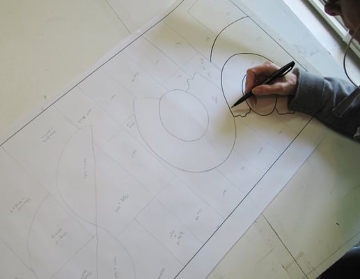 Technique: Coupe et assemblage à façon.