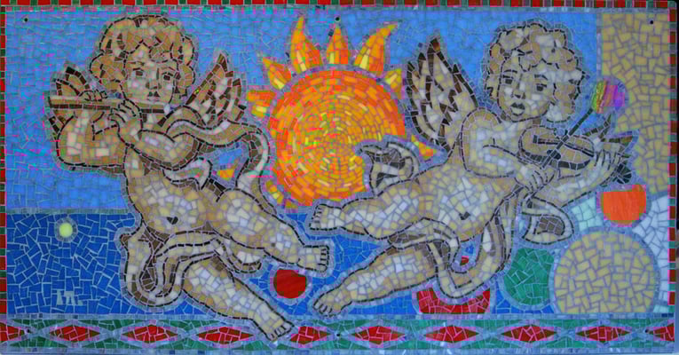 Fresque réalisé en collaboration avec l'Artiste peintre C. Curien. Ayant reçu cette commande qui devait être réalisée en mosaïque et n'état pas mosaïste, la partie dessin et couleur fût réalisé en partenariat et la partie réalisation en atelier.