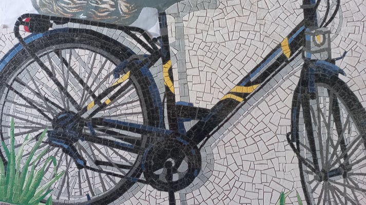 Les propriétaires du restaurant Les voyageurs de Tournon d'Agenais (47) m'ont commandé une dizaine de table en mosaïque. C'est une matière qu'ils aiment bien et leur projet était de renouveler leur mobilier de restaurant. Le prix des tables pour professionnels est assez cher et j'ai pu leur proposer pour le même budget le elooking des anciennes tables. Pour passer dans le prix j'ai proposé un travail simple en 2 couleurs et calepinage en grille. Par contre j'ai mélangé le 1x1 cm aux 2x2 cm pour certaines frises et aucune table n'est pareille. Elles sont rangées l'hiver sous auvent, elles restent belles et plaisent beaucoup à la clientèle.