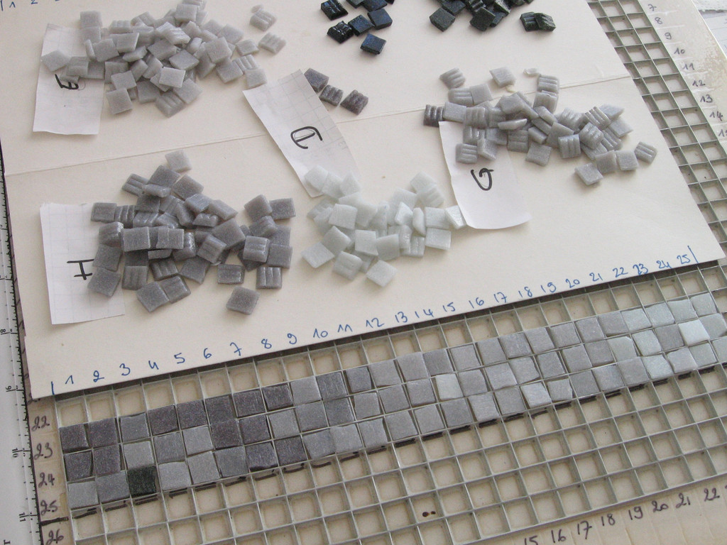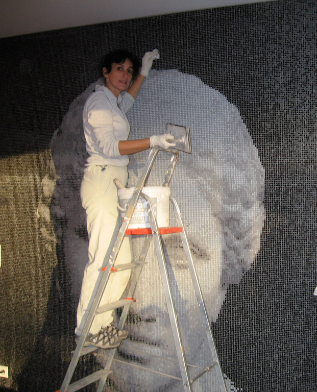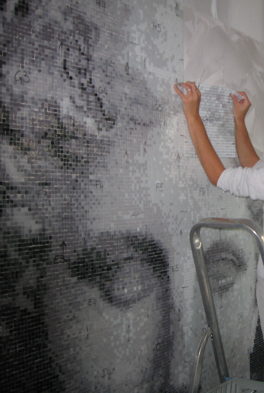L'idée de ma cliente était de commander l'un des portraits du catalogue Bisazza, j'estime que pour leur prix est très cher pour de la série. Du coups mon idée a été de lui proposer une mosaïque personnalisée.