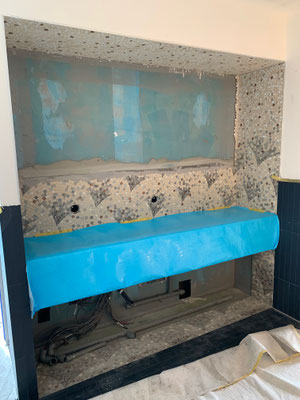 2023 - SDB PRIVATIVE - PARIS - MUR 5M2- PATE DE VERRE 3x3cm - TECHNIQUE EN GRILLE