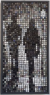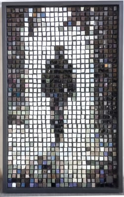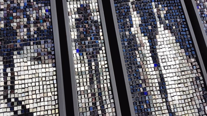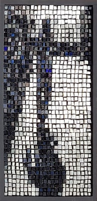 Le sujet est d'abord travaillé en infographie, la partie mosaïque sera comme un assemblage de morceaux placés dans un abscisse/ordonnée. Pour URBAN Je choisis les smalts, émaux vénitiens traditionnels, fabriqués pour les mosaïstes depuis des siècles et je travaille d'une façon linéaire et binaire. Pour mes autres démarches artistiques, je fais le contraire, j'utilise des matières industrielles très carrées que je coupe et que j'assemble de façon traditionnelle.