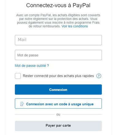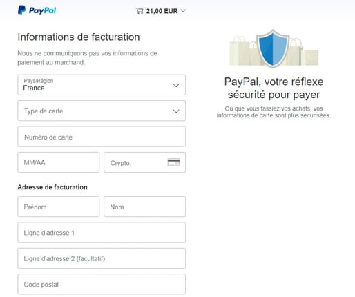 Lorsque vous choisissez le paiement par CB ou PAYPAL, cette fenêtre ci-dessous apparaît.