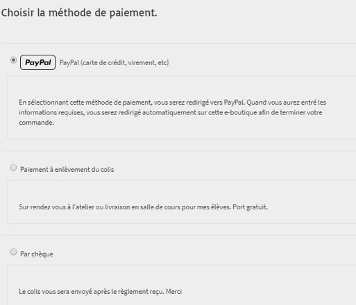 -Carte bleue ou PAYPAL.